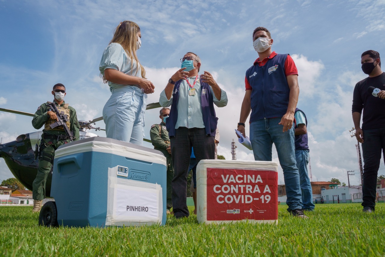 A entrega das doses ocorreu no Estádio Costa Rodrigues e foi feita pelo gestor Regional de Saúde de Pinheiro, Janderson Gusmão, e pelo coordenador estadual das Regionais de Saúde, Aristeu Marques de Almeida. As vacinas chegaram em uma aeronave do Centro Tático Aéreo (CTA).