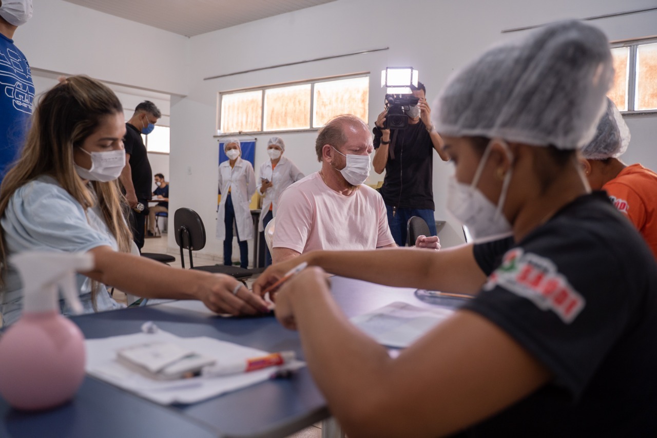Othelino Neto também recebeu a dose de reforço no Centro de Capacitação de Professores Deny Reis Leite.