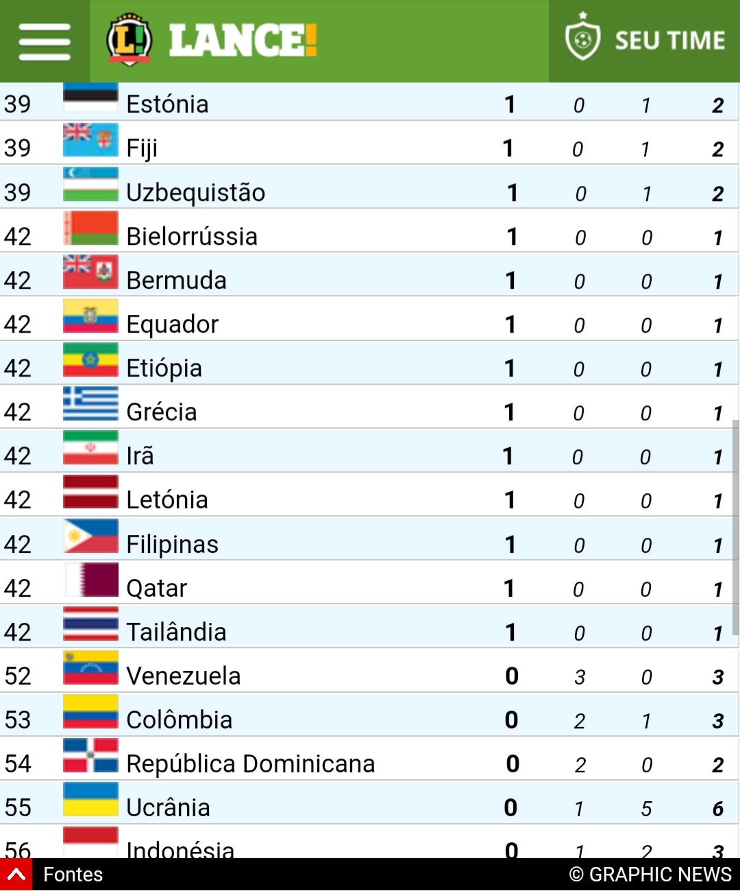 CONFIRA O QUADRO DE MEDALHAS ATUALIZADO.